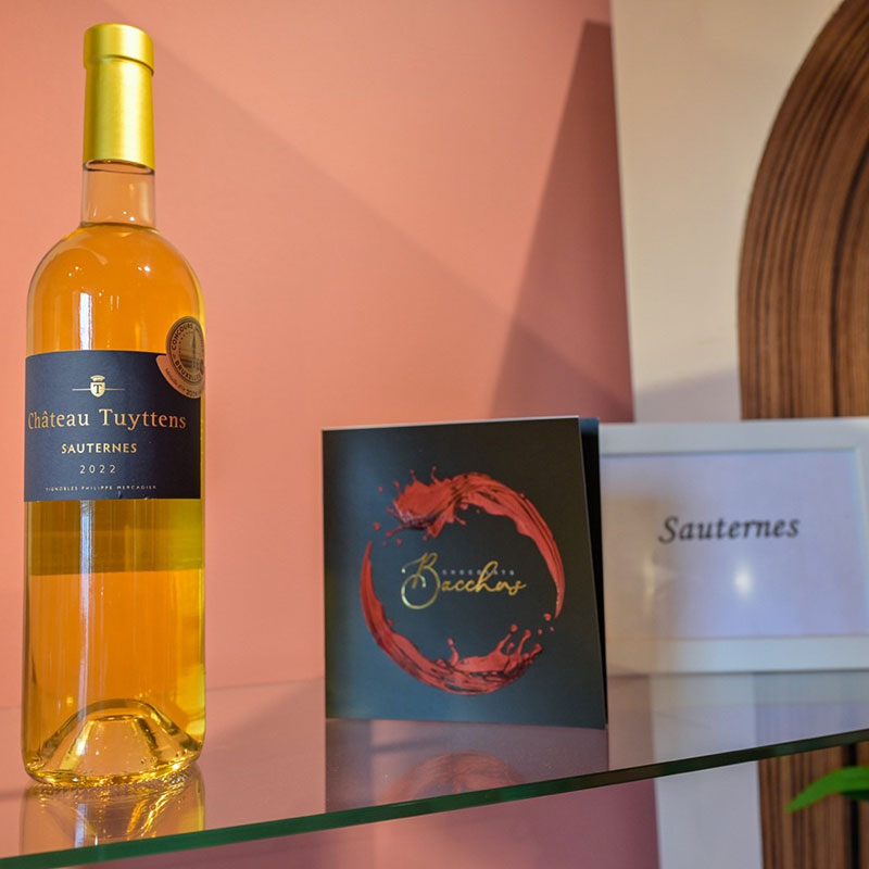 Dégustez le chocolat blanc de Bacchus, croquant en surface et fondant en cœur, aux arômes profonds de beurre de cacao. La Cuvée de Reims, vin blanc pétillant d’exception, puise son élégance dans le terroir unique de la région champenoise. Inspirée par des méthodes traditionnelles transmises depuis le XVIIIᵉ siècle, cette cuvée est née de l’alliance entre savoir-faire ancestral et modernité, offrant des bulles fines et délicates qui dansent en bouche. L’effervescence et la fraîcheur du vin viennent sublimer la richesse du chocolat, créant un accord gourmand et raffiné, parfait pour célébrer les instants précieux et festifs.